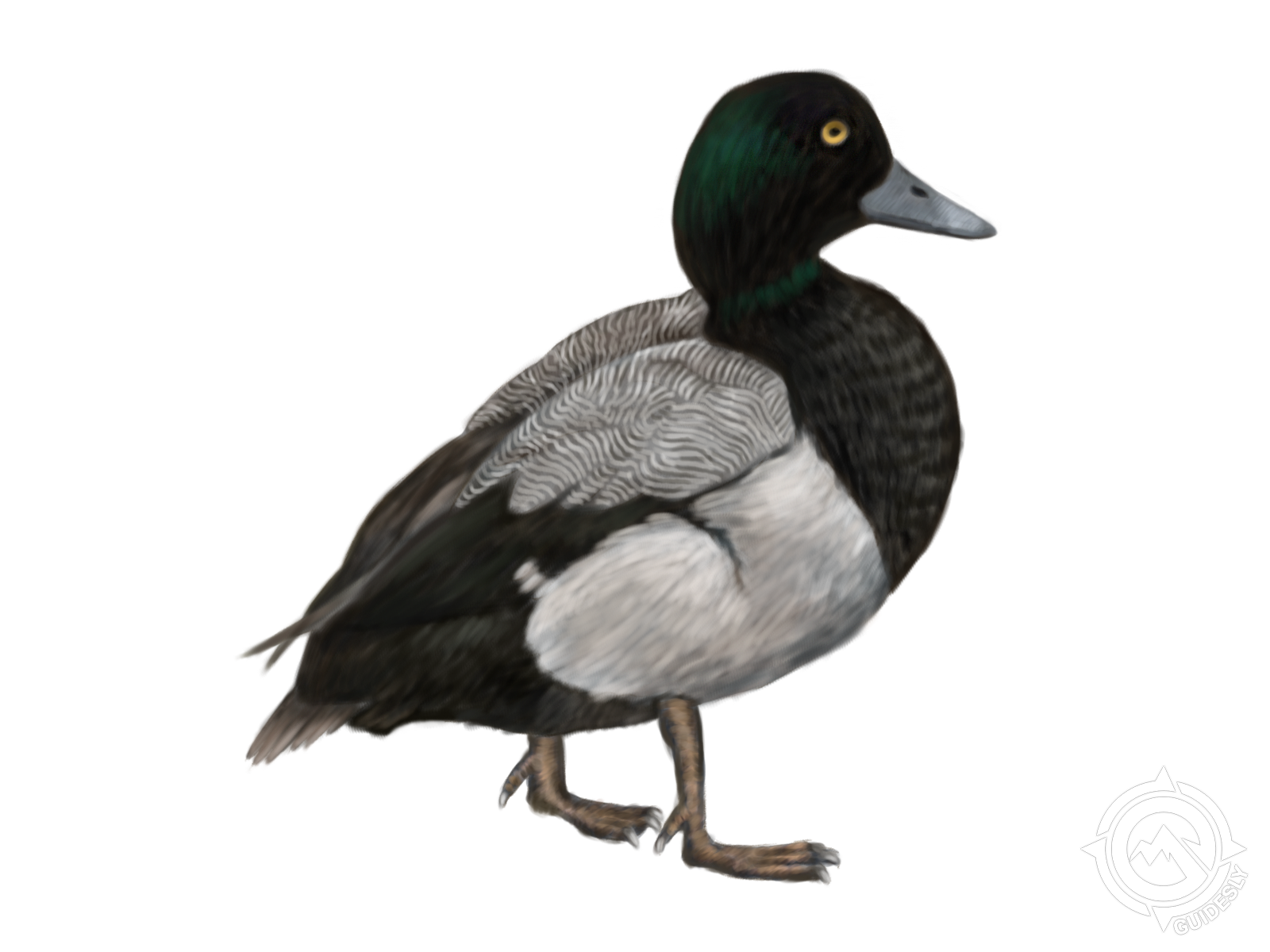 Greater scaup are solid diving ducks that arrive in big rafts once the weather turns cold, usually by late October. These birds love the open water and deeper areas of the lake, often hanging out in 10-20 foot depths where they dive for mollusks and aquatic insects. The males have that distinctive white back and black head with a greenish sheen, while females are brown with a white patch around the bill. They're compact, sturdy birds that fly fast and low over the water. Hunters appreciate scaup because they decoy readily and provide consistent action when other species are finicky. They're also underrated on the table - dark meat with rich flavor when prepared right. The key to pulling scaup is using a big spread of decoys in open water. They like to see numbers, so don't be shy with your setup.